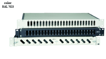 There is a choice of 10 panels with appropriate cutouts for the installation of various fiber-optic coupling, together with a blanking panel for individual population or as a cover.